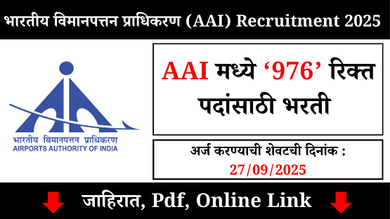 भारतीय विमानपत्तन प्राधिकरण (AAI) Bharti 2025 Last Date – 27/09/2025