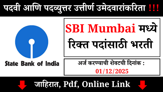स्टेट बँक ऑफ इंडिया मुंबई (SBI Mumbai) Bharti 2025 Last Date – 01/12/2025